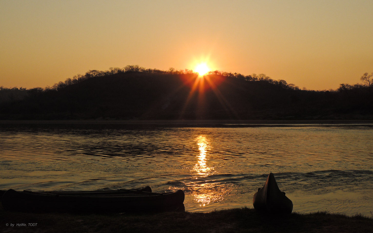 Sonnenaufgang am Luangwa River - Grenzfluss zu Mosambik